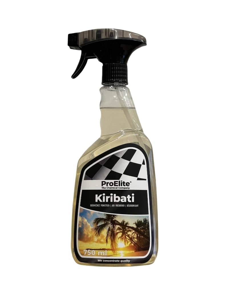 ProElite KIRIBATI on intensiivse troopilise puuviljalõhnaga õhuvärskendaja, mis neutraliseerib ebameeldivad lõhnad ja annab ruumile või auto salongile värske, suvise aroomi. Toode on kasutusvalmis, ei jäta pindadele plekke ning sobib kasutamiseks nii sõiduki sisemuses kui ka igasugustes siseruumides. Pihustada otse õhku või tekstiilile (mitte ülitundlikele pindadele).